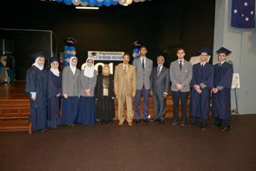 During the Year 12 Graduation Day, The School Captains presented Mr Shafiq Khan co-founder and Managing Director and Mrs Ghazwa Adra Khan co-founder and Executive Principal of Al-Faisal College with plaques in recognition of their 20 year establishment, commitment and service to the community. Dr Intaj Ali, Director of Education was also presented with a plaque for his outstanding commitment to education and raising the school bar.